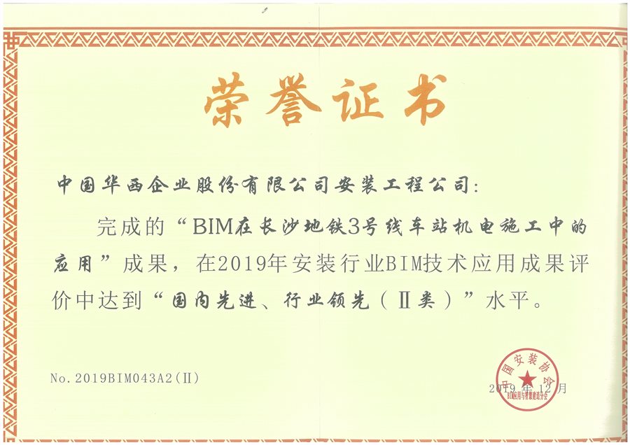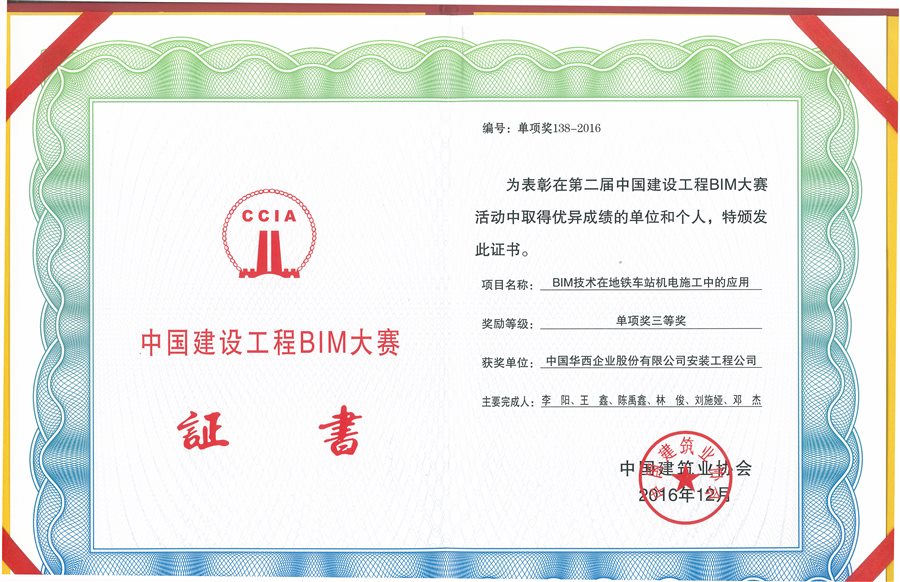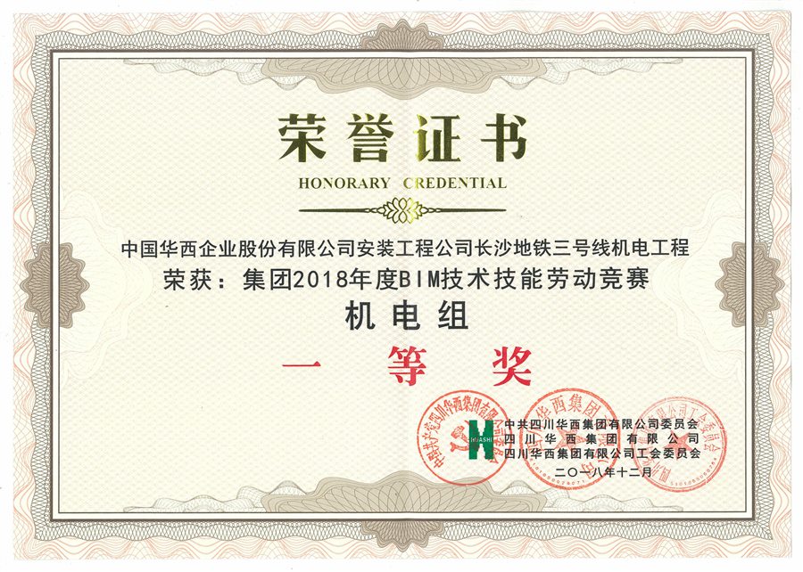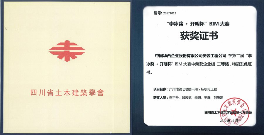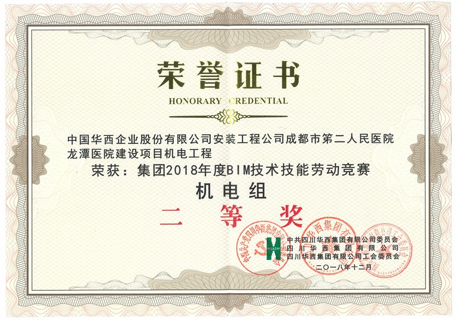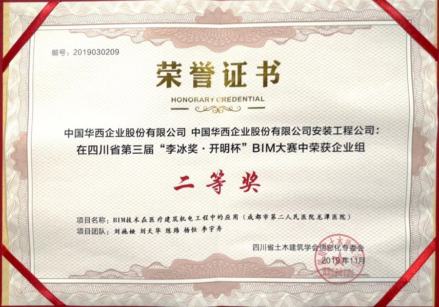 | 15 | 華西集團2018年BIM競賽機電組二等獎 | 企業(yè)級 | 2018年12月 |