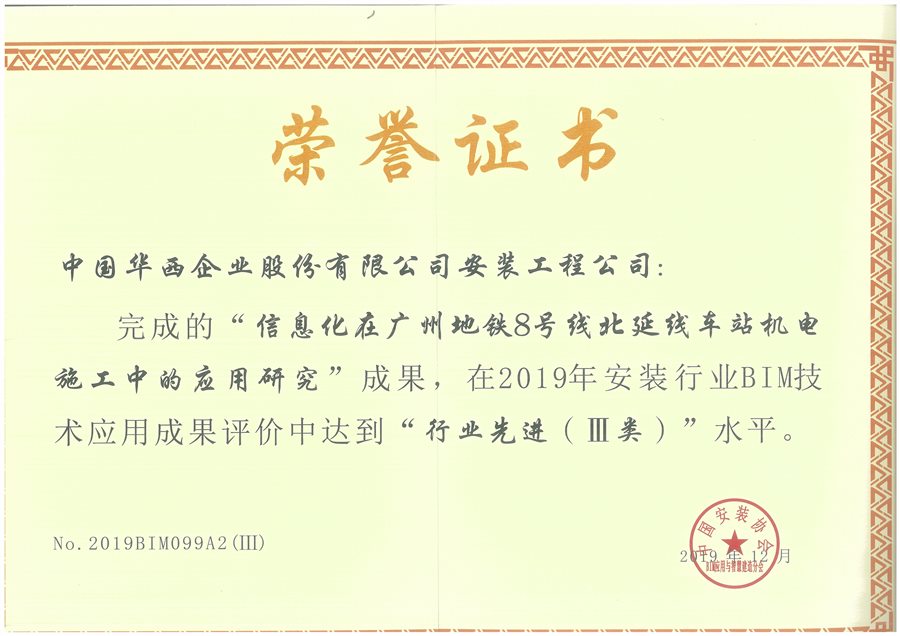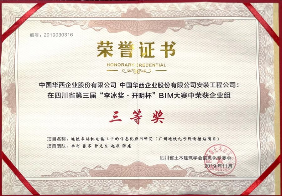 | 11 | 四川省第三屆“李冰獎-開明杯”BIM大賽企業(yè)組三等獎(廣州地鐵9號線清塘站) | 省級 | 2019年6月 |