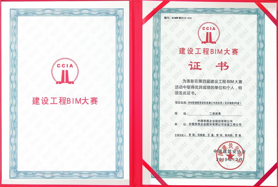 | 2 | 第四屆中國建設工程BIM大賽二類成果 | 國家級 | 2019年12月 |