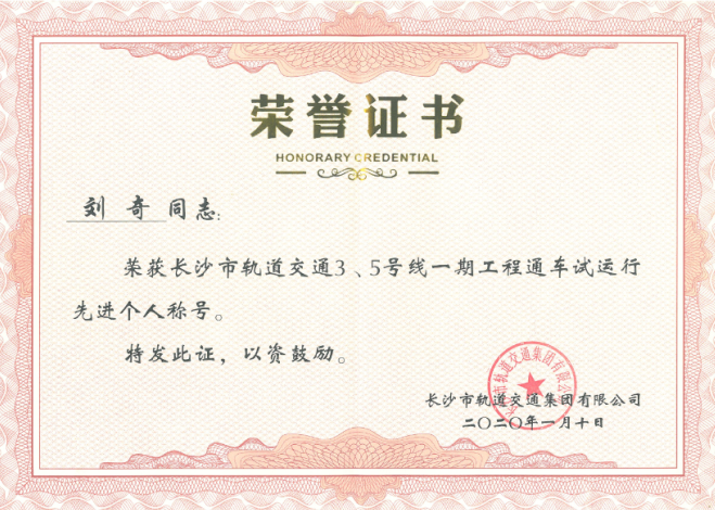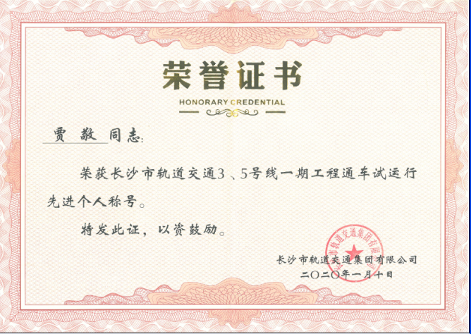 經(jīng)軌道集團(tuán)公司的細(xì)致考核,授予我司“開(kāi)通試運(yùn)行先進(jìn)集體”、“安全生產(chǎn)先進(jìn)單位”的榮譽(yù)稱號(hào),同時(shí),項(xiàng)目部賈敬、劉奇兩位同志榮獲長(zhǎng)沙市軌道交通三、五號(hào)線通車試運(yùn)行“先進(jìn)個(gè)人”榮譽(yù)稱號(hào)。金祖勝榮獲2019年度長(zhǎng)沙市軌道交通集團(tuán)有限公司“安全管理先進(jìn)個(gè)人”榮譽(yù)稱號(hào)。充分肯定了華西在長(zhǎng)沙三號(hào)線工程建設(shè)過(guò)程中所付出的不懈努力,是一支能打硬仗的隊(duì)伍。
