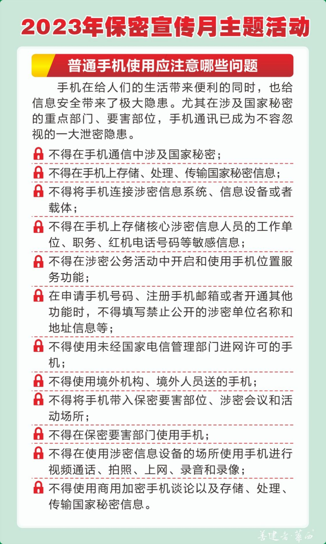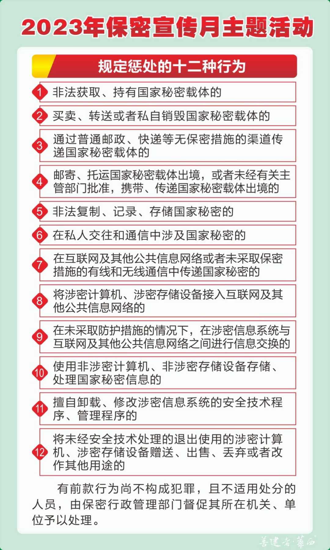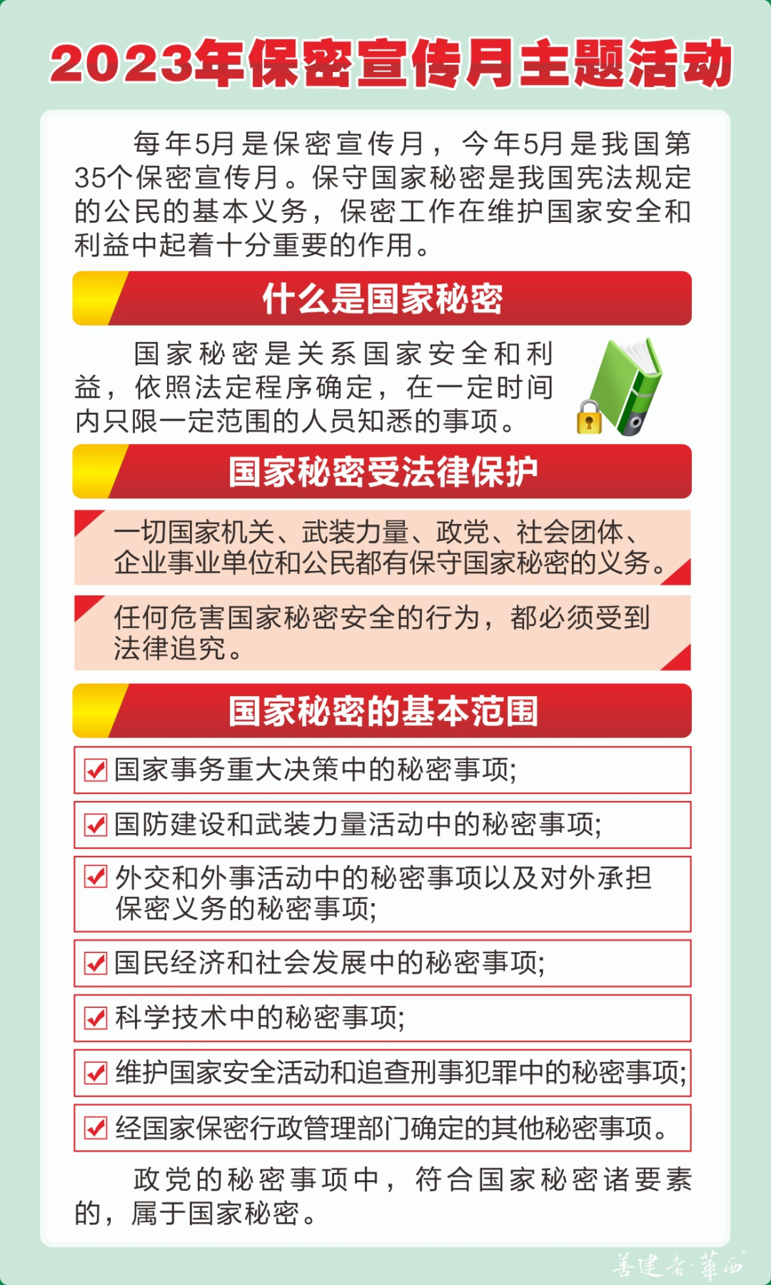 今年五月,是全國(guó)第35個(gè)“保密宣傳月”。中央保密辦(國(guó)家保密局)近日面向全社會(huì)發(fā)布2023年全國(guó)保密宣傳教育月保密公益宣傳片《藏在照片里的秘密》和海報(bào),倡導(dǎo)大家增強(qiáng)保密意識(shí),保守國(guó)家秘密,維護(hù)國(guó)家安全。