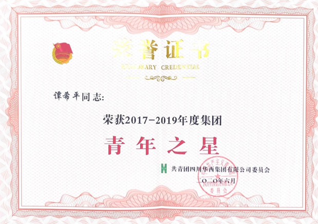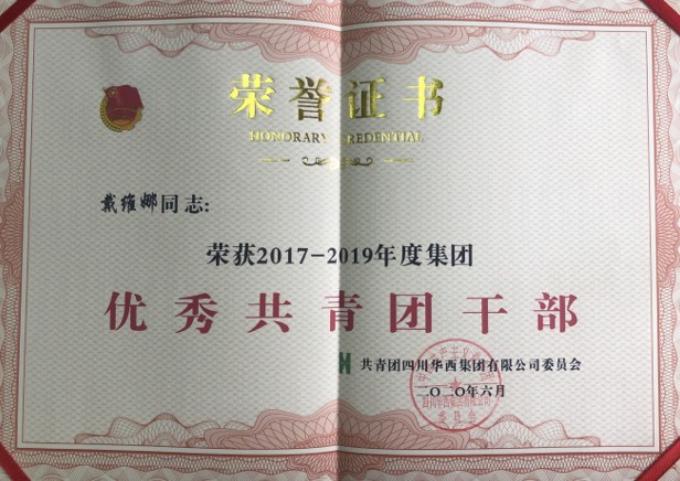 在由集團(tuán)團(tuán)委組織開展的“2017—2019年度集團(tuán)優(yōu)秀共青團(tuán)組織、優(yōu)秀共青團(tuán)干部和青年之星”評選活動中,我公司綿陽分公司團(tuán)支部獲得“集團(tuán)優(yōu)秀共青團(tuán)組織”稱號,公司職工戴維娜、譚希平兩名同志分別獲得“集團(tuán)優(yōu)秀團(tuán)干部”、“集團(tuán)青年之星”稱號。