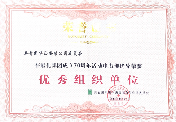 公司榮獲四川華西集團(tuán)成立70周年大會(huì)“優(yōu)秀承辦單位”榮譽(yù)稱號(hào)